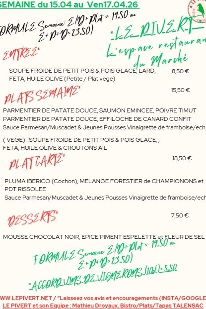 L'EQUIPE DU PIVERT : Le tout nouveau BISTRO/TAPAS & BOISSONS en cuisine immersive maison et SERVICE TERRASSE et PASS est HEUREUSE DE VOUS ACCUEILLIR! POUR TOUJOURS MIEUX VOUS SERVIR!!